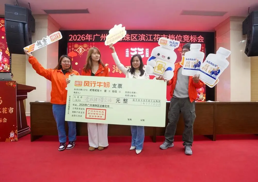 1月15日,广州市海珠区对2026年滨江迎春花市进行档位竞标。“标王档”以140100元价格被风行牛奶夺得。据悉,今年海珠滨江花市将在保持传统花市韵味前提下,适当融入该区目前持续推进的人工智能产业。