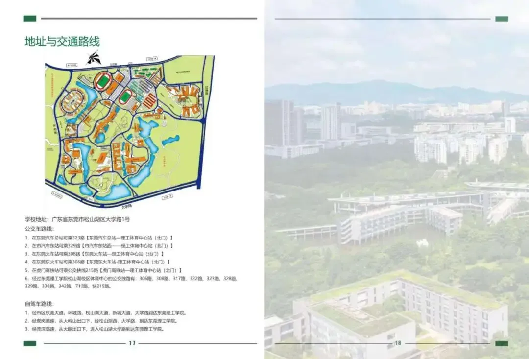 学校现有松山湖、莞城两个校区,其中松山湖校区坐落在松山湖高新技术产业开发区大学路1号,占地1860亩(含370亩国际合作创新区);莞城校区坐落在莞城区学院路251号,占地340亩。现有教职工1865人,其中正高职称人员139人、副高职称人员360人、博士947人。有普通全日制学生超2万人,继续教育学生近2万人,迄今为地方培养各类人才约12万人,95%左右的毕业生留莞就业创业。