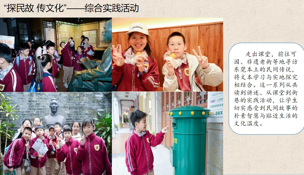 十一月“探民故 传文化”,围绕教材民间故事单元共读《中国民间故事》,通过思维导图梳理情节、“民间故事会”比赛演绎经典、探访可园与非遗老街寻访本土传说等活动,让文化传承落地生根。
