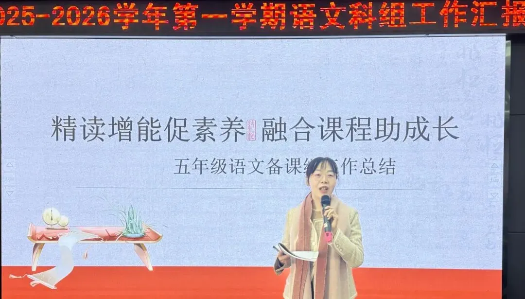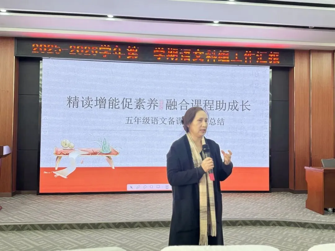 时光荏苒,弦歌不辍;教思践悟,聚力前行。为总结学期教学成果,凝聚育人智慧,2026年1月14日,东莞外国语学校小学语文科组期末汇报会如期举行。五年级以“精读增能促素养,融合课程助成长”为核心的深耕实践、六年级以 “追光鲁迅”为主题的创新探索,在汇报中徐徐铺展。科组长王成莲老师的精准复盘、陈彩虹副校长的殷切期许,为新学期教学指明方向。一场兼具温度与深度的教育盛宴,尽显莞外小语人的初心与担当。