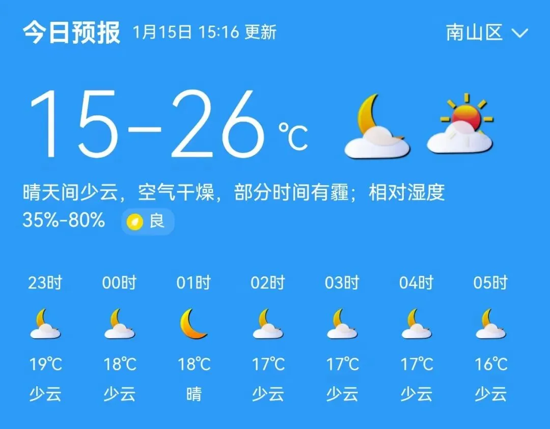 今日南山晴雨已播报