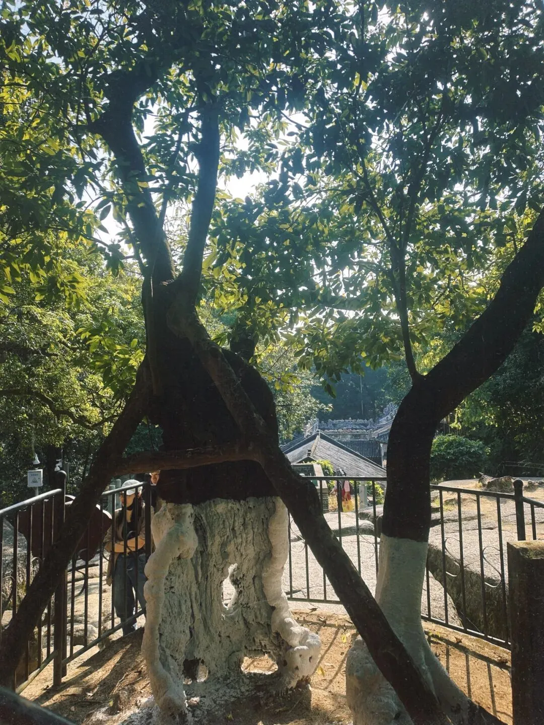 正面看这棵千年古树只是被左右木桩支撑着,但依旧枝叶繁茂。倘若你转到古树的背后就会发现,原来这么粗壮的古树完全是靠半围的树皮为基生长着,它的根部如今涂上防虫白粉的部分早已在历史长河中腐空了!这个罕见的生命奇迹也随着玉岩书院的历史保留至今。交通贴士: