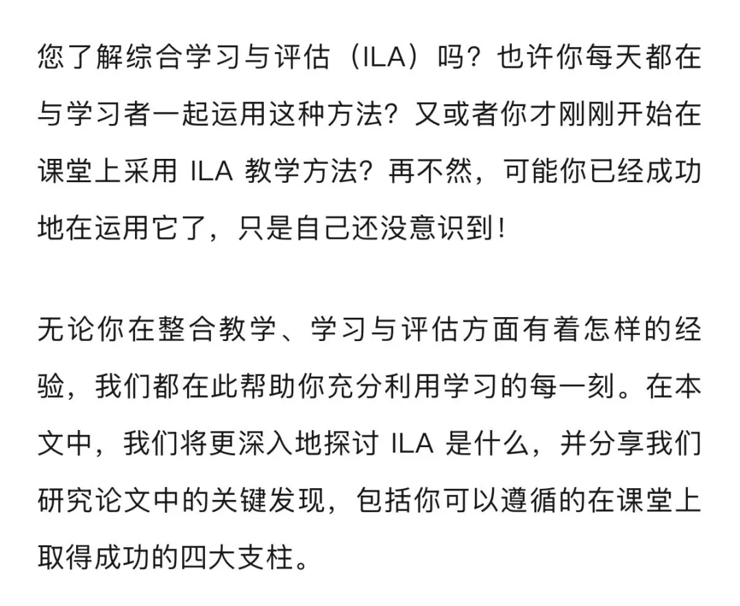 (备注:深圳名师苑教育集团 - 钟铭总校校长 剑桥综合学习与评估(ILA)策略证书)Are you familiar with the benefits of integrated learning and assessment (ILA)?