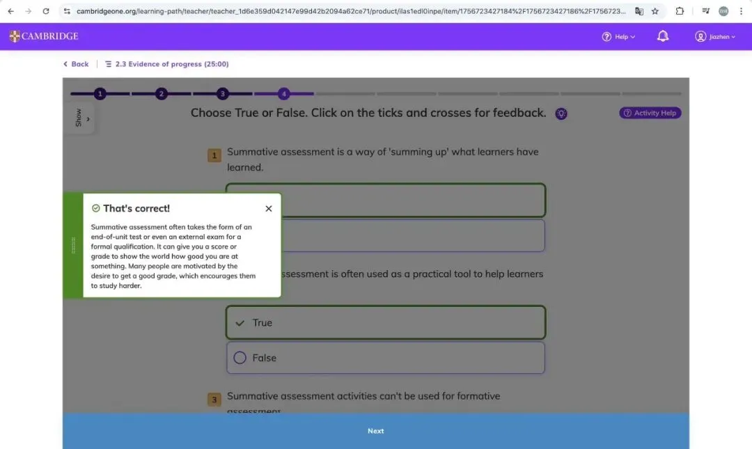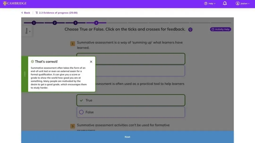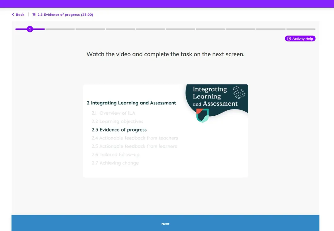 Collecting evidence of progress against the learning objectives is essential, but it does not necessarily mean formal assessments. For example, teachers are encouraged to collect data by using a range of techniques such as quizzes, practice activities, classroom discussion and monitoring learners while they work.