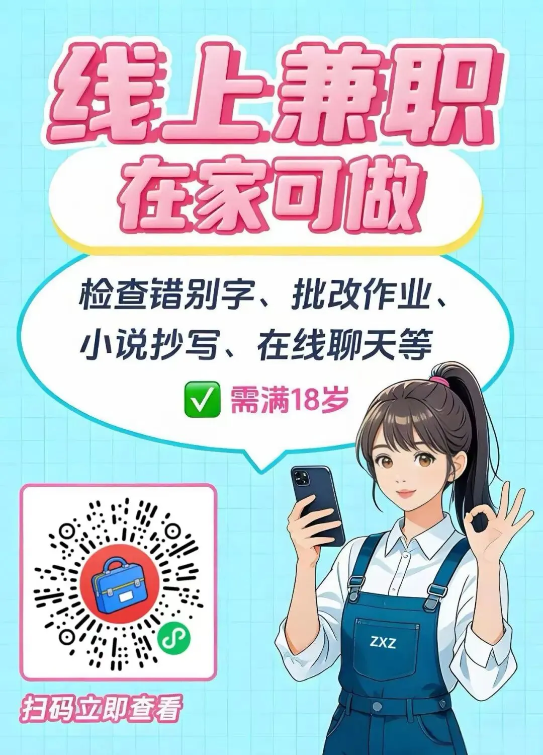 工作要求:男女不限,身体健康,初中以上学历,20-45岁以内,会使用智能手机。