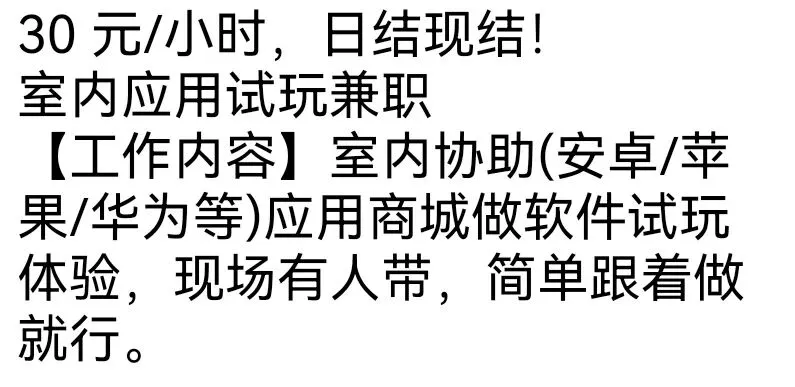 【深圳兼职】30 元/小时,龙华/宝安,室内应用试玩兼职!日结现结!