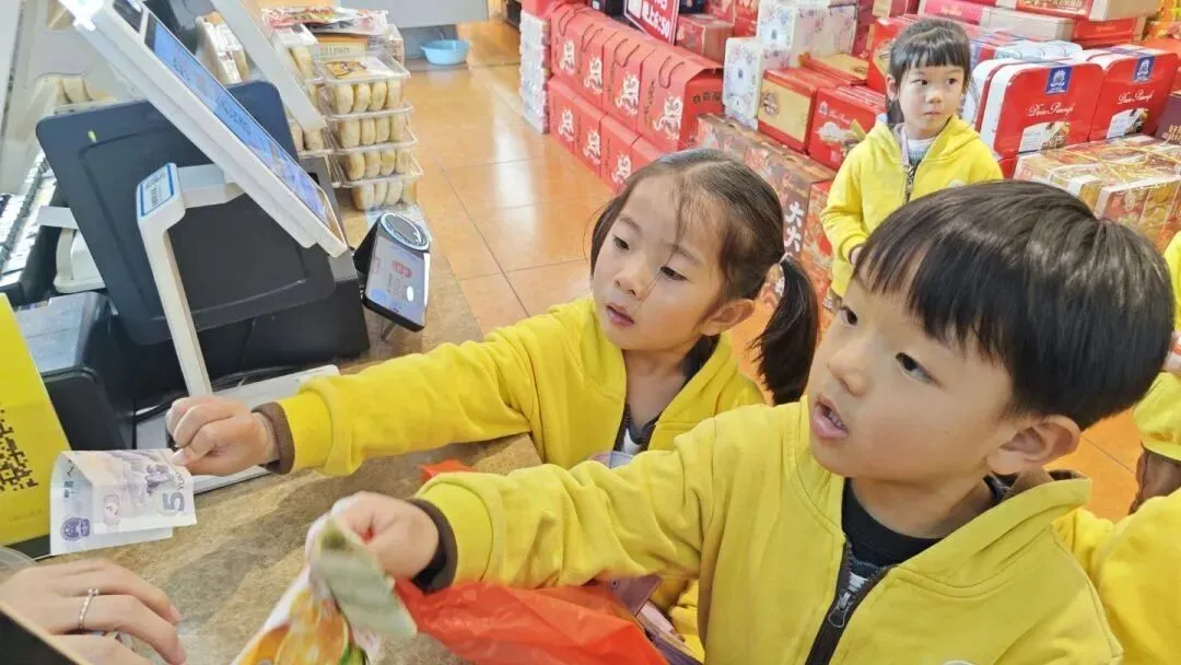 孩子们背着包包,思考“买什么最实用”;挑选心仪物品时,会踮起脚尖比对价格;离开时,会礼貌地跟周围人道谢、说“再见”!他们从依赖到独立,一次购物实践,让“责任感”在孩子们心底悄然发芽。