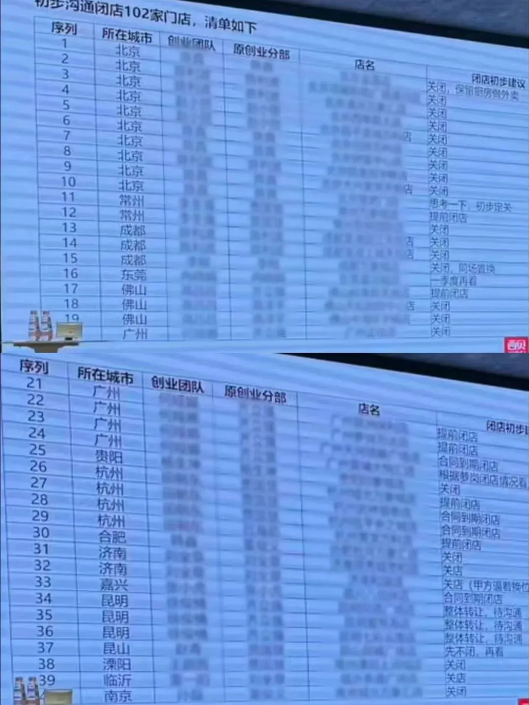 西贝内部会议资料及闭店清单