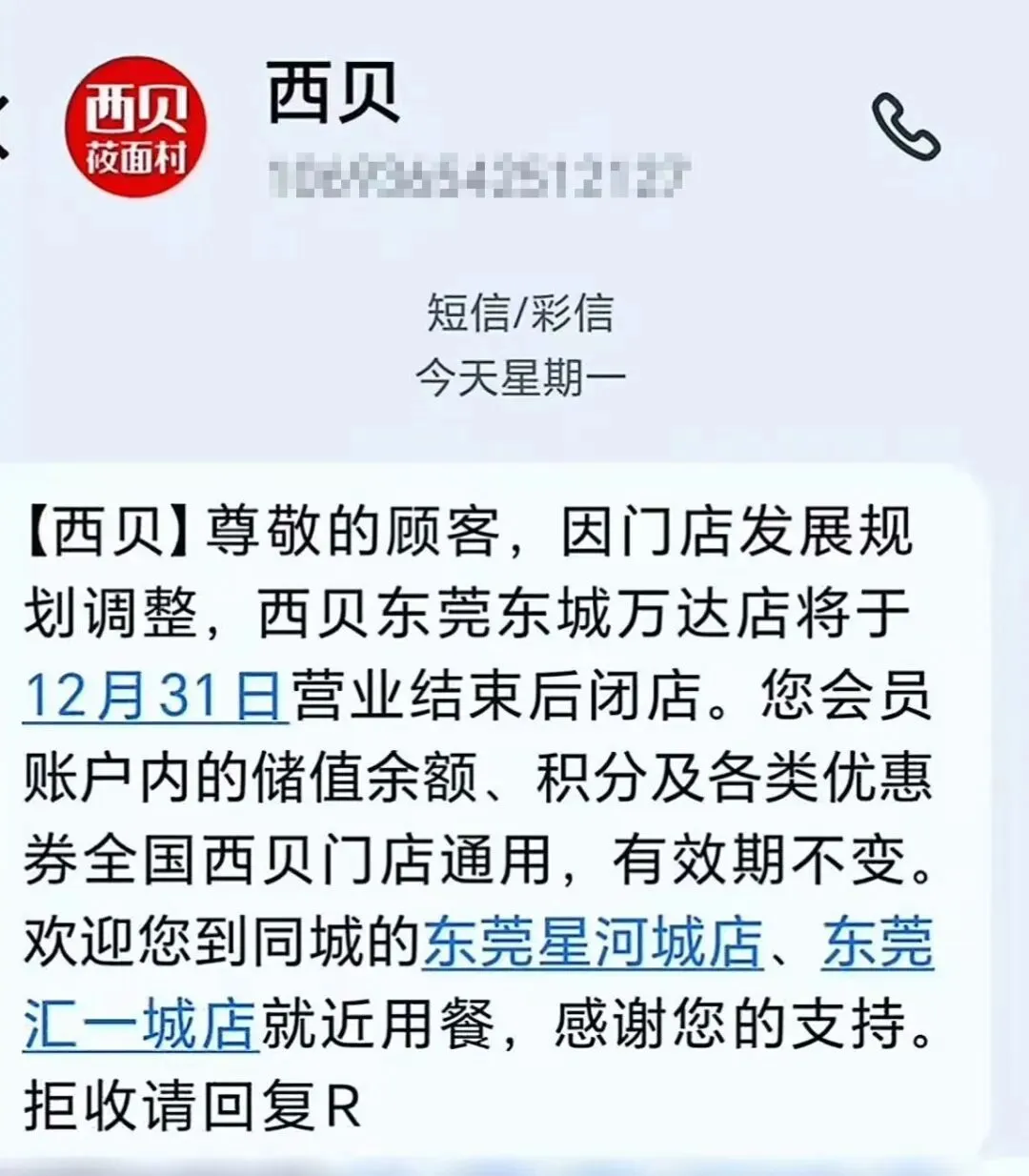 也是早早收到闭店短信