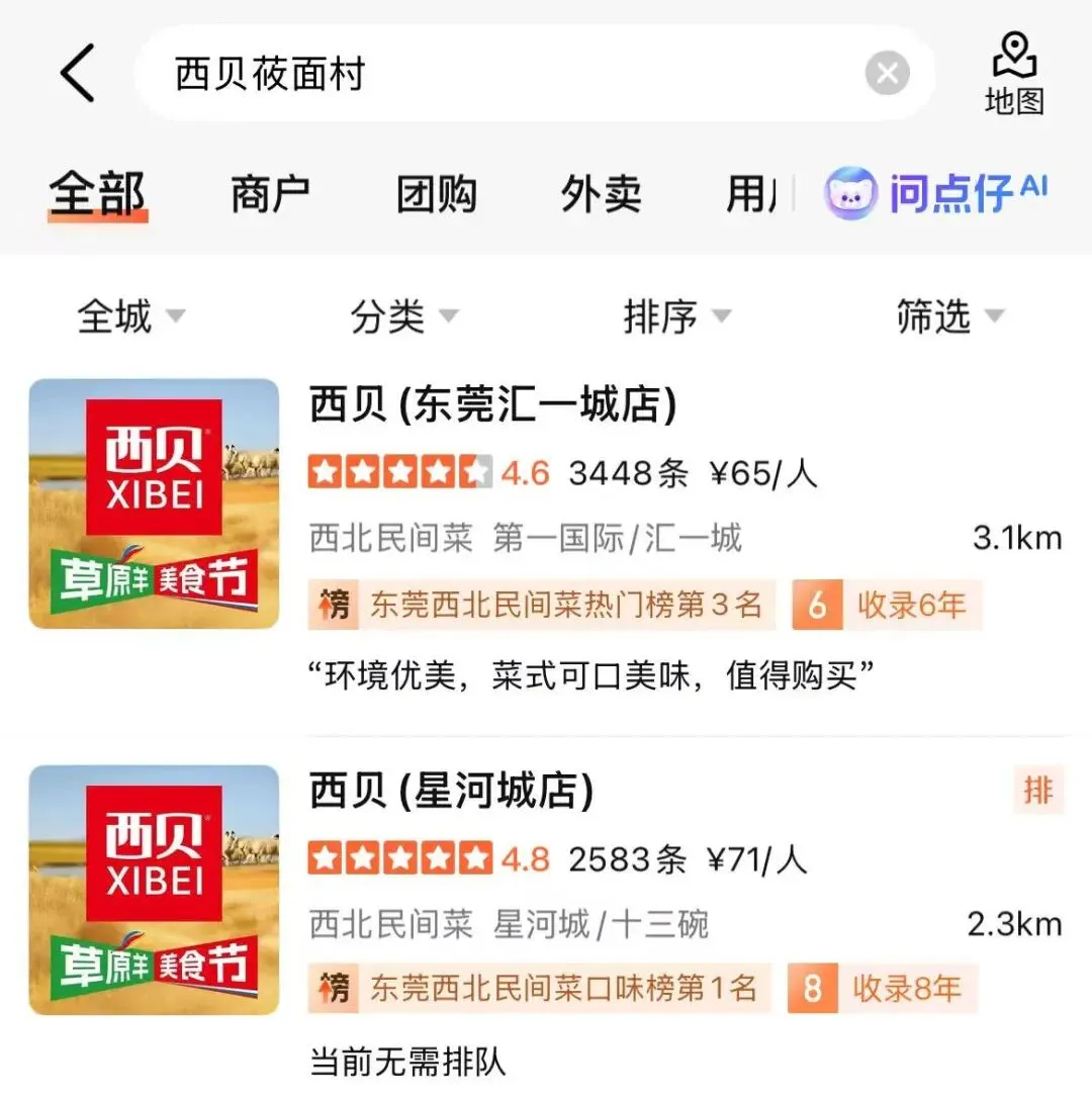 目前东莞还有两家西贝门店