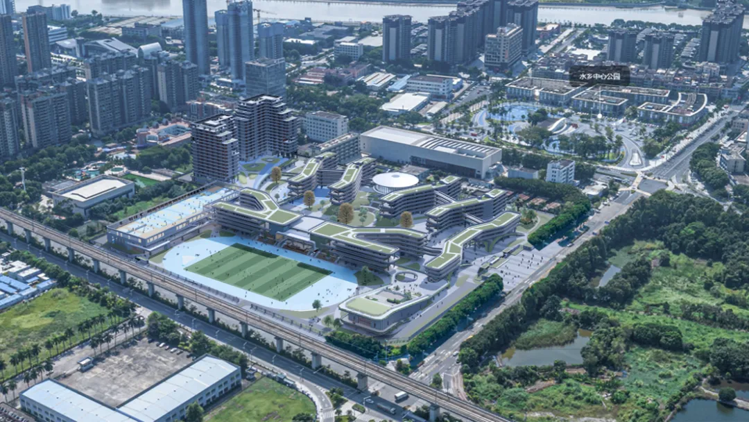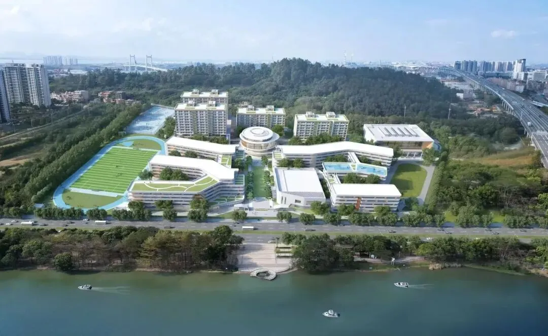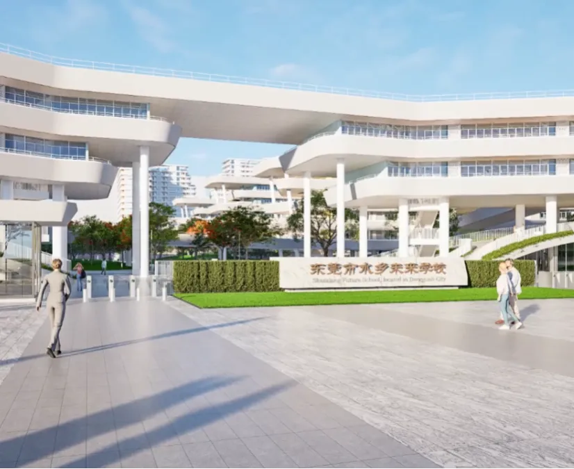 东莞水乡未来学校位于洪梅镇,学校占地161.3亩,教室面积达85平方米/间,采用双走廊设计利于通风采光;全校风雨连廊贯通,便捷舒适;拥有独栋艺术楼、体育馆、图书馆、恒温泳池、STEAM科创中心以及高标准建设的实验楼等硬件设施。