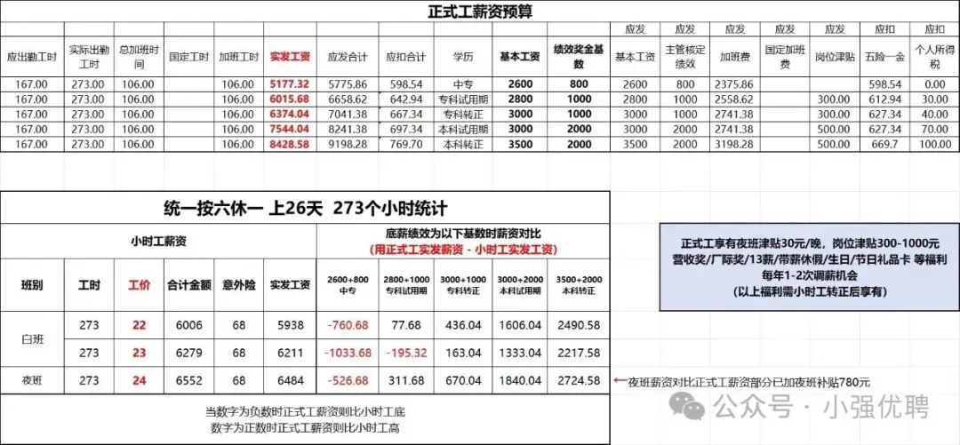 夜班20+2元稳岗,必须能接受两班倒,三个月后转正80%长白班,只有20%两班倒。