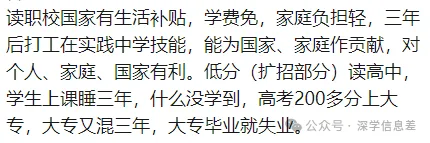 2.让不适合走学习路径的学生,转向职业教育,学一门技术。同时提升职校的办学质量。