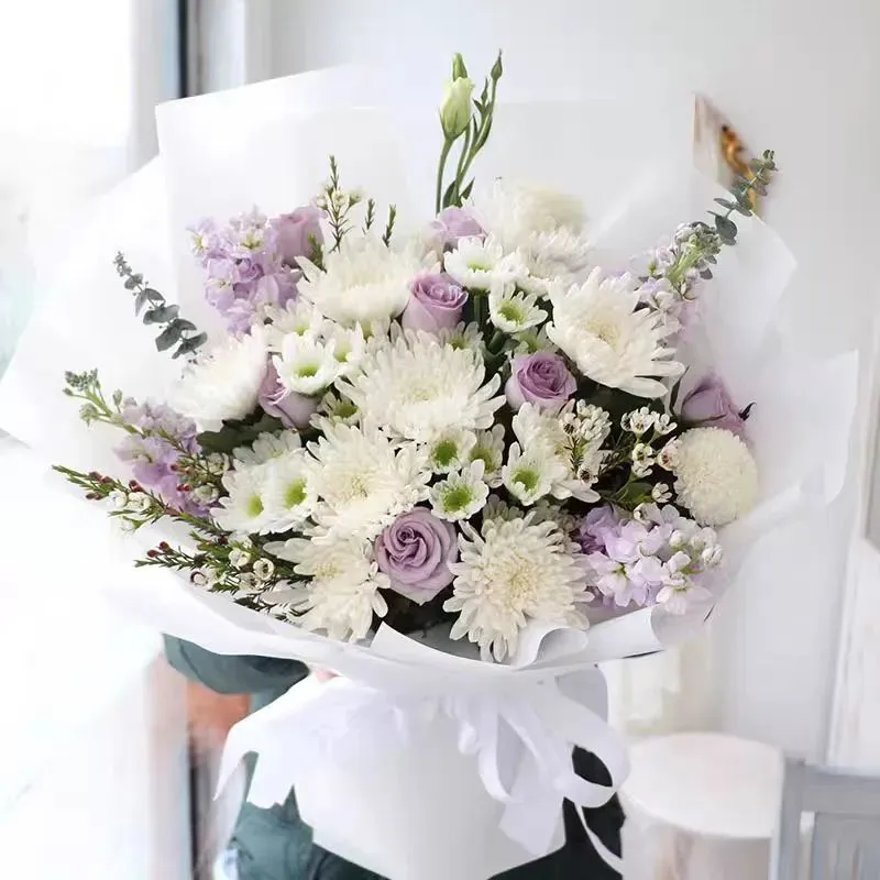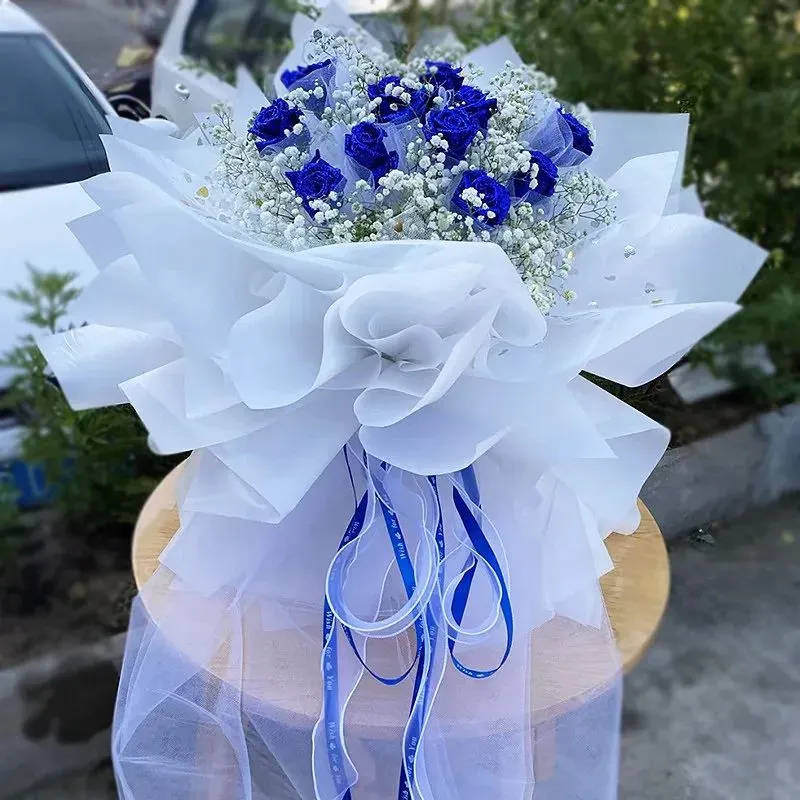 还有张先生,他想在七夕节向相恋不久的女友求婚。他希望花束能够独特而浪漫,体现出他对这份感情的重视。我们的花艺师为他量身定制了一束以蓝色妖姬为主花材的花束,搭配上白色的郁金香和紫色的勿忘我,再用金色的丝带精心装饰。张先生提前预订了送花上门服务,并在花束中附上了一张写满爱意的卡片。七夕节当天,当女友收到这束花时,被眼前的美景惊呆了。张先生随后单膝跪地,向女友求婚,女友感动得当场答应。张先生说,尚花客广州市南沙区本地实体鲜花店的花束为他的求婚增添了完美的氛围,让他成功抱得美人归。