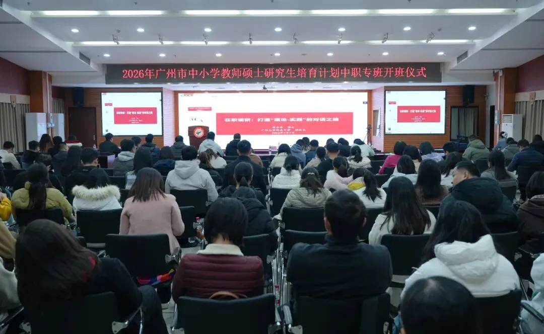 近日,“‘博学笃行,启硕新程’——2026年广州市中小学教师硕士研究生培育计划中职专班开班仪式”在广州大学大学城校区隆重举行。广州市教育局市管一级调研员赵琼飞及市教育局相关领导、广州大学党委常委、副校长张其学教授、继续教育学院院长王学通教授、教育学院副院长苏得权副教授等校内负责人及全体专班学员参会。仪式由广州大学继续教育学院副院长马大卫同志主持。