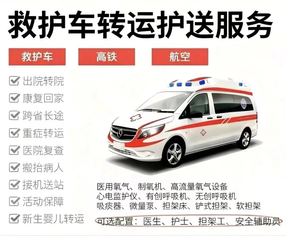 广州救护车出租转运服务流程讲述—120接送病人、呼吸机租赁、护送服务、出院转院(长途跨省)