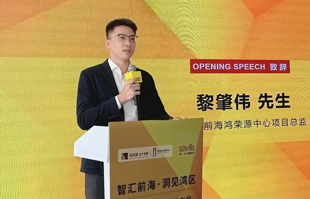 随后,鸿荣源前海鸿荣源中心项目总监黎肇伟发表讲话。他表示:“前海作为粤港澳大湾区的核心引擎,在2025年持续展现强劲发展动能,政策支持、产业集聚与基础设施建设协同并进,楼宇经济提质增效,营商环境不断优化,已成为区域高质量发展的重要标杆。展望2026年,随着规划深化落实、交通网络升级与资源整合加速,前海将迎来新一轮战略机遇,发展潜力将进一步释放。他表示,前海鸿荣源中心期待与第一太平戴维斯及各界伙伴深化合作,共同把握前海发展机遇,携手谱写互利共赢的新篇章。”