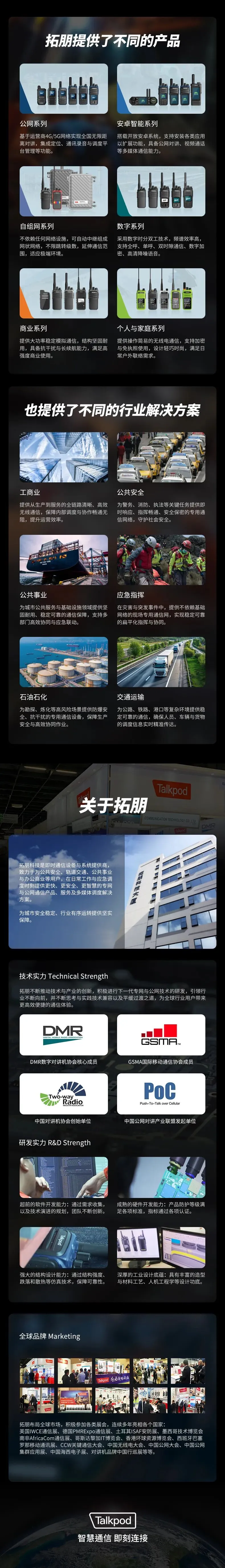 无论是日常工作还是关键时刻,即时通信的需求无处不在,拓朋坚持为用户创造即刻连接的价值,致力于为工商业、公共安全、应急指挥、交通运输等用户提供更智慧、更高效、更安全的通信产品及调度解决方案,帮助用户通过信息化提升工作与生产指挥调度能力,凭借技术深耕,拓朋赢得了越来越多用户的信赖与选择。