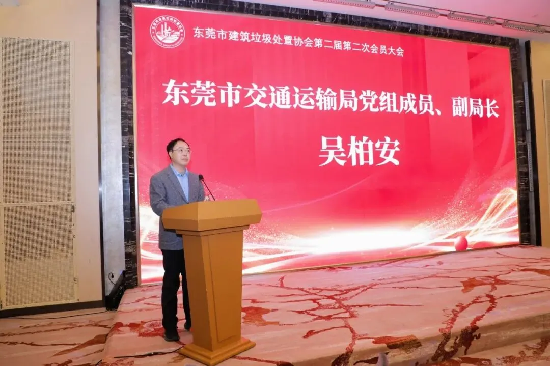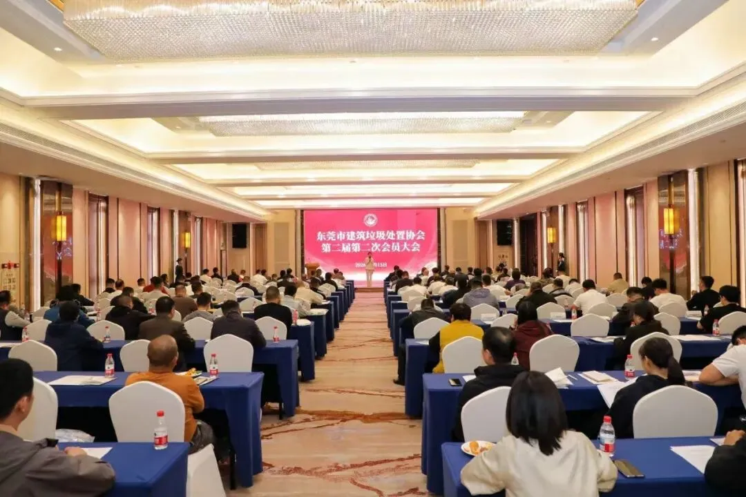 2026年1月15日,东莞市建筑垃圾处置协会第二届第二次会员大会在东莞市会展国际大酒店三楼如意厅隆重召开。本次大会以“同舟共济克难关·抱团冲锋创新局”为主题,共同回顾过去一年的成就,展望未来的发展方向。东莞市城市管理和综合执法局三级高级主办胡孔齐;东莞市交通运输局党组成员、副局长吴柏安;东莞市住房和城乡建设局四级调研员杨王福;东莞市生态环境局四级调研员陈耀仲;东莞市城市管理和综合执法局建筑垃圾管理科科长谢庆辉,一级主任科员罗文辉,一级主任科员李征宇;东莞市住房和城乡建设局安监站副站长黄斌;东莞市工商联(总商会)联络部部长李立华等领导受邀出席大会。