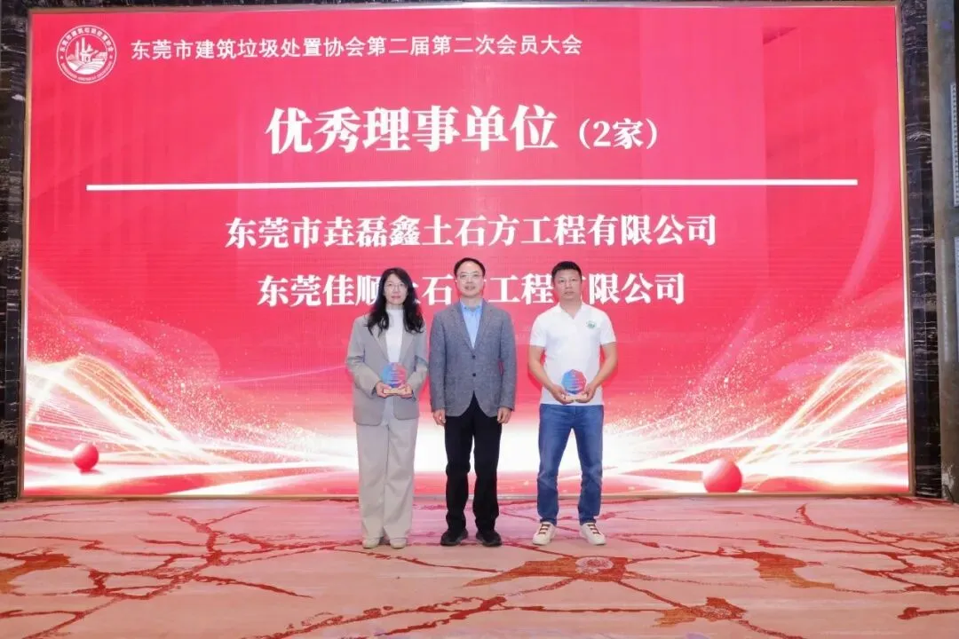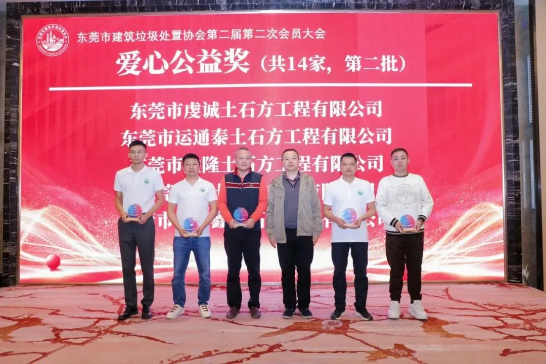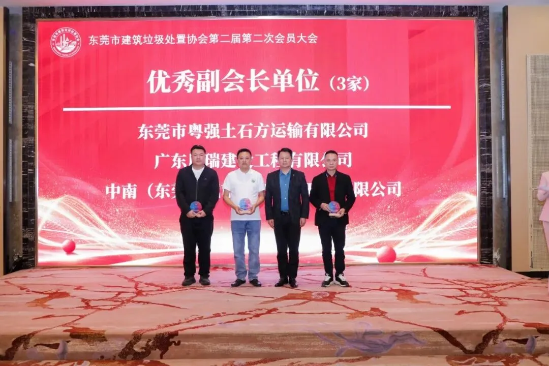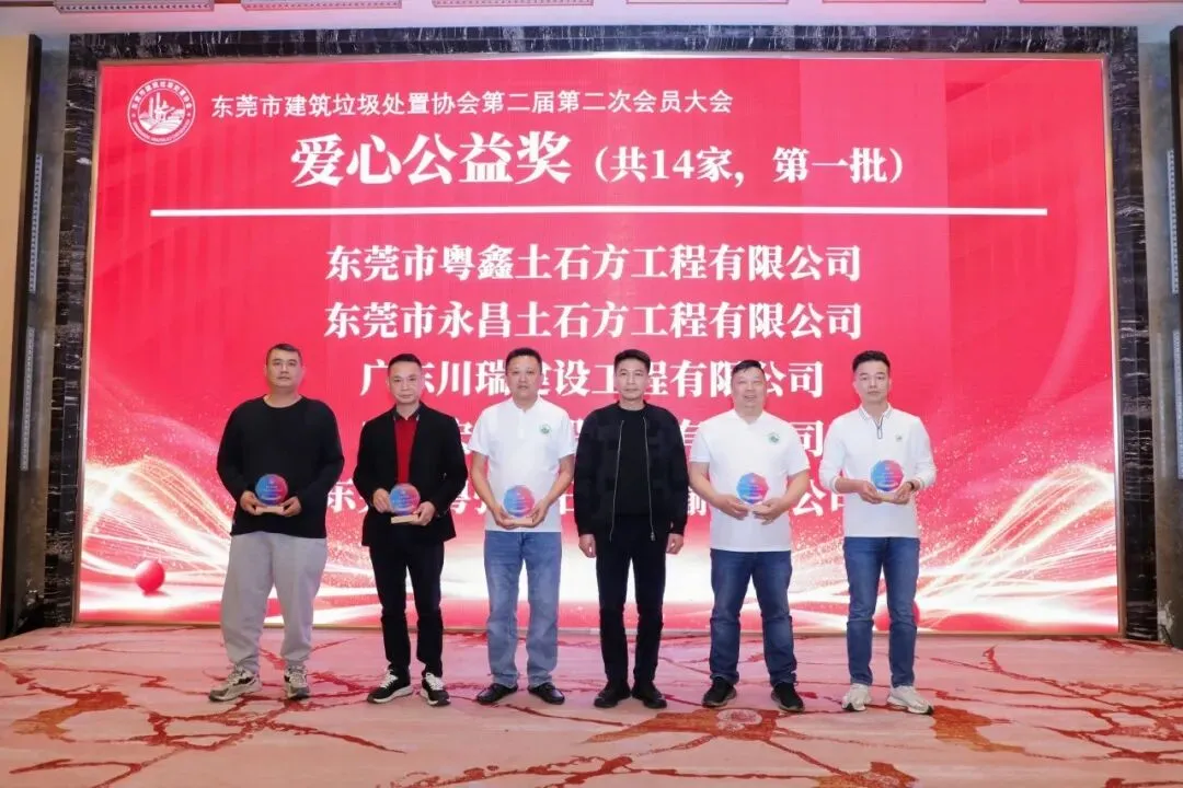 大会的重要环节之一是颁发2025年度优秀单位证书。经评选,东莞市粤强土石方运输有限公司、广东川瑞建设工程有限公司、中南(东莞)城市矿产资源开发有限公司等3家单位荣获“优秀副会长单位”称号;东莞市垚磊鑫土石方工程有限公司、东莞佳顺土石方工程有限公司等2家单位荣获“优秀理事单位”称号;东莞市天鑫新型建材有限公司荣获“优秀监事单位”称号。此外,还有13家优秀会员单位、14家爱心公益奖获得单位和6家突出贡献奖获得单位受到表彰。(具体名单详见末尾)