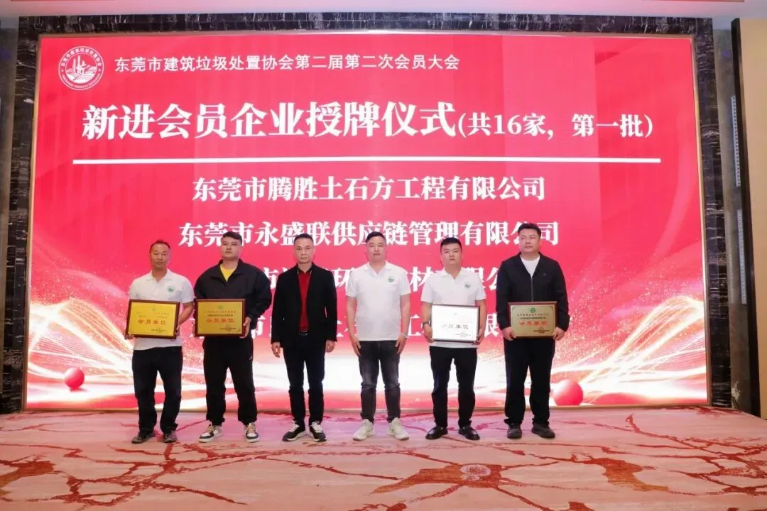 2025年度协会新增16家会员单位。这些新会员的加入为协会注入了新的活力和动力。在授牌仪式上,新进会员单位代表从协会班子手中接过了会员证书,标志着他们正式成为东莞市建筑垃圾处置协会大家庭的一员。