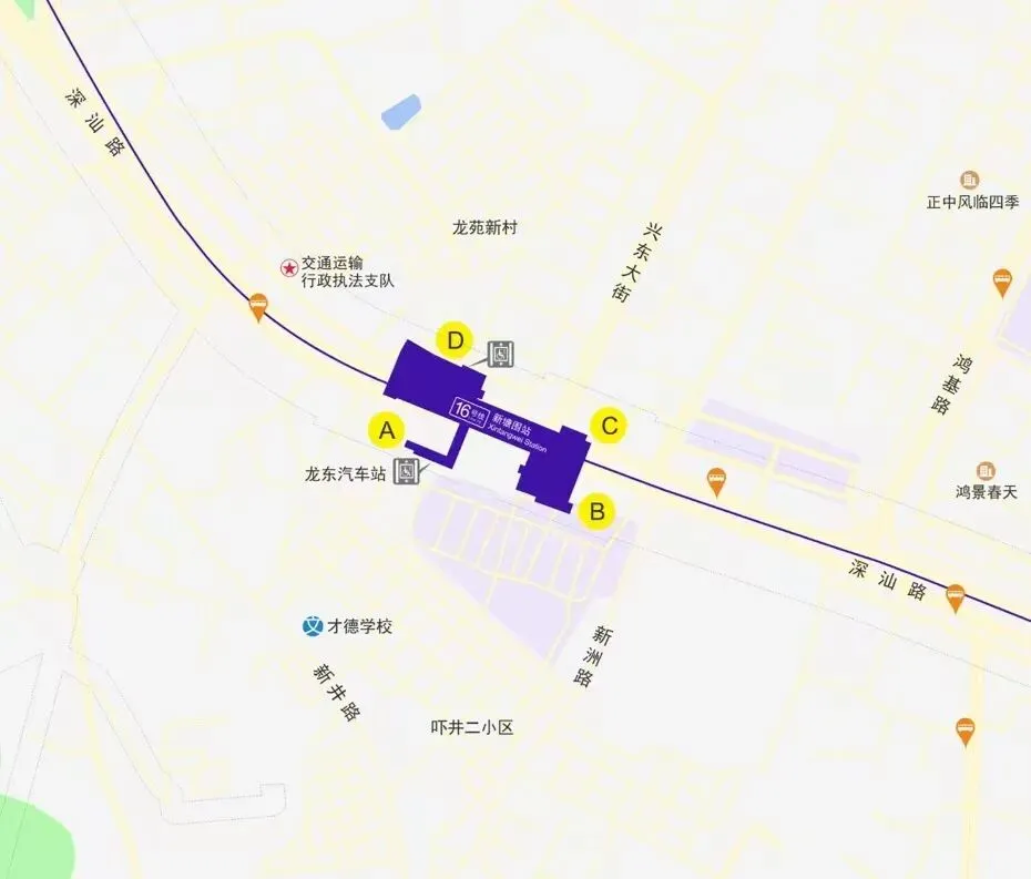 新塘围站是地铁16号线上的一站,新塘围站位于深汕路与兴东大街交叉口,沿深汕路东西向跨路口布置。