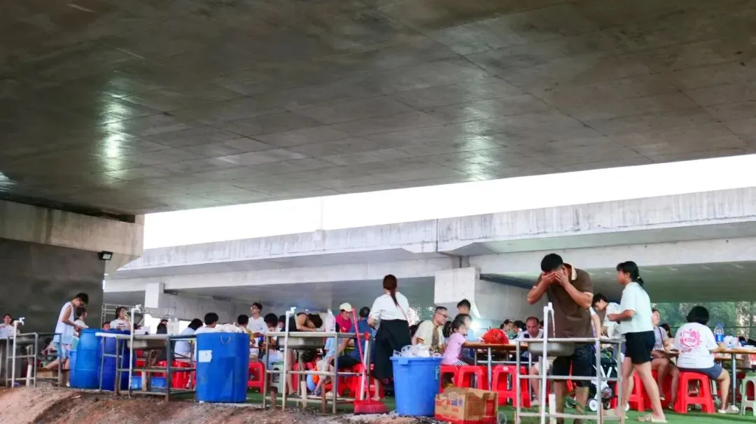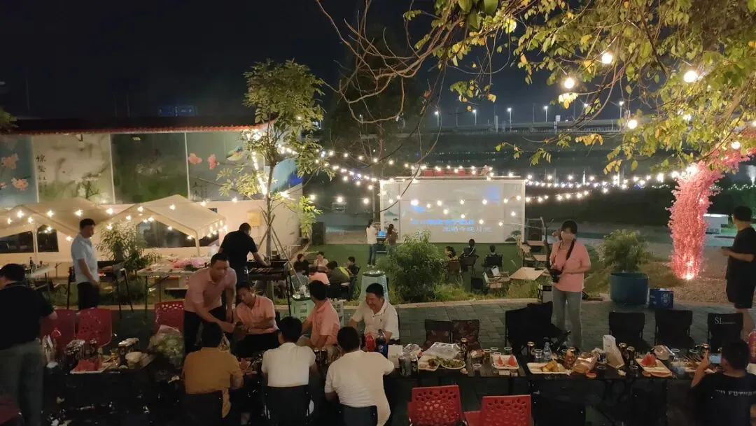 如果你觉得坐在一起吃鸡不够欢乐,还可以点一份烧烤套餐,在莲塘大秀场,一边烧烤,一边 K 歌,欣赏着美妙的夜景,沐浴着微风,与朋友举杯共饮,岂不快哉!