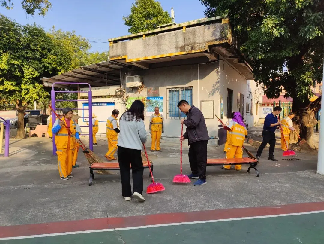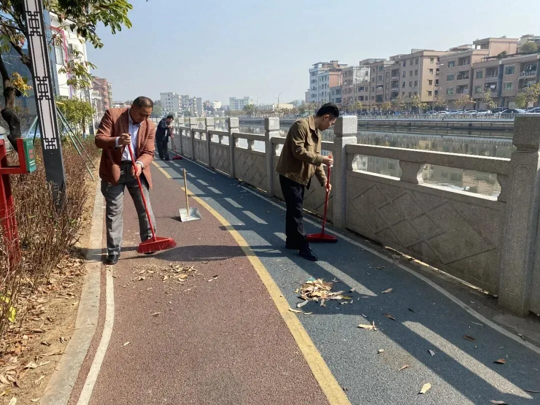 在高埗镇江滨广场,市委常委、副市长刘光滨,市政府副秘书长孙海波,市城管局局长韩暖渠,镇党委副书记、镇长曾鸣,副镇长熊振球,市、镇城管等相关部门工作人员以及环卫工人等一同开展环境卫生大扫除。大家分工协作,通过集中清扫、修剪绿植、擦洗“城市家具”等方式,对重点区域和关键部位进行全面清理,用实际行动美化家园。