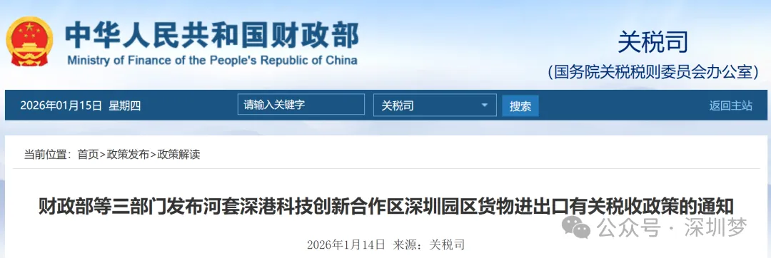 关于河套深港科技创新合作区深圳园区货物进出口有关税收政策的通知