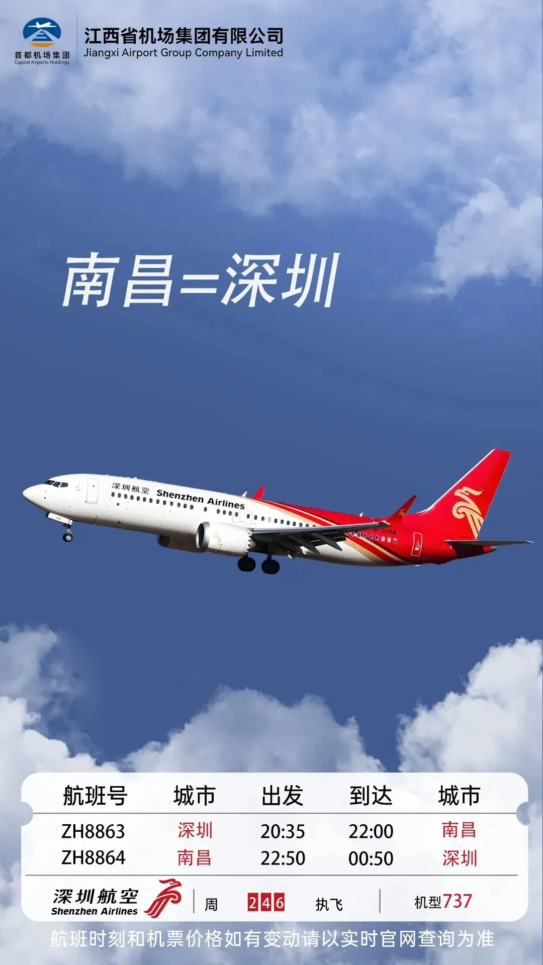 南昌深圳往返航班!