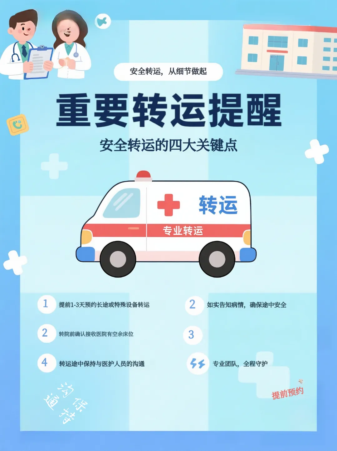 针对不同病患需求,我们提供个性化转运方案:危重患者享受全程ICU级别监护,术后病人获得专业康复护理,新生儿则采用专属保温转运系统。我们严格遵循医疗消毒标准,车辆每日进行全面消杀,确保转运环境安全。服务覆盖全国范围,提供24小时应急响应,实现床对床转运,让患者家属省心无忧。
