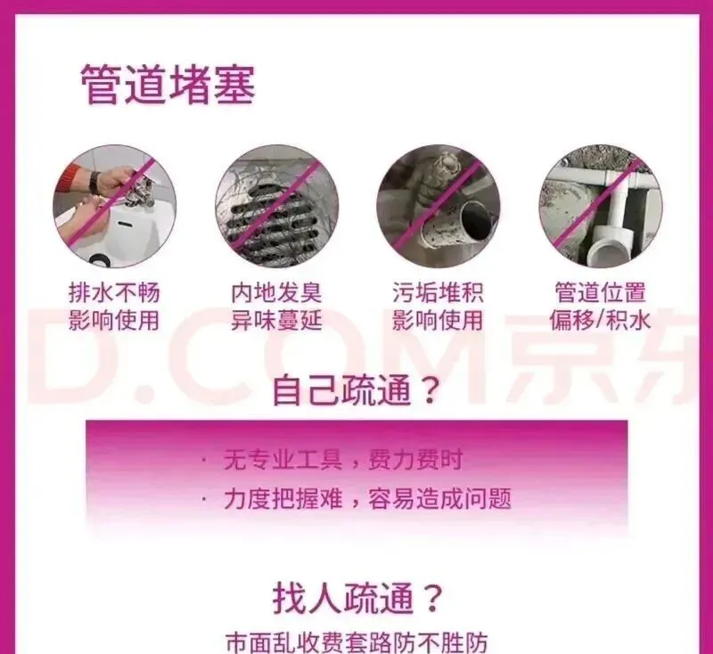 管道疏通:使用家用/大型疏通机,专业疏通各类疑难下水道、卫生间管道、地漏、浴缸、菜池、阴沟、马桶、蹲坑等