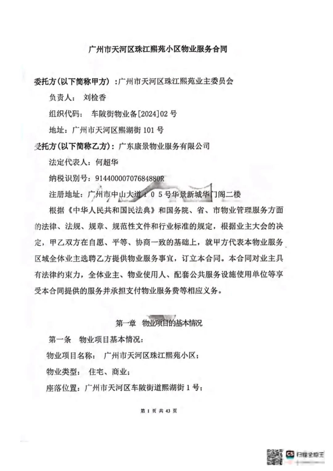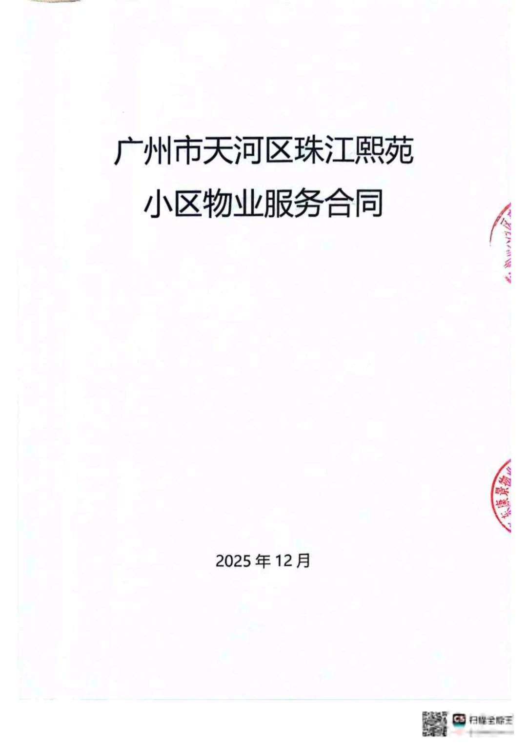 >广州市天河区珠江熙苑小区物业服务合同(酬金制)