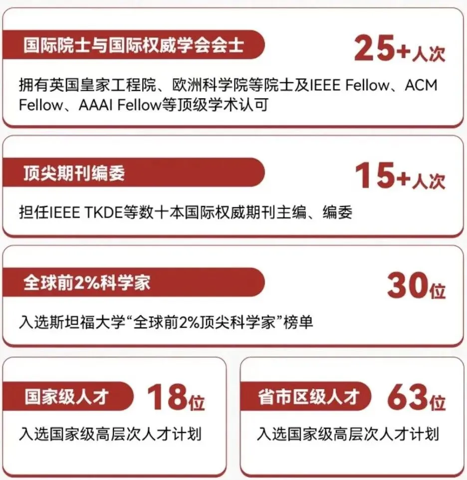 师资方面,信息枢纽由国际知名学者领衔,汇聚了一批具有交叉学科背景的全球顶尖人才。团队成员不仅在国际顶级会议获奖,其技术成果也在头部企业落地转化,体现了"学研产"结合的特色。在2025年发布的斯坦福"全球前2%顶尖科学家榜单"中,信息枢纽共有30人上榜。