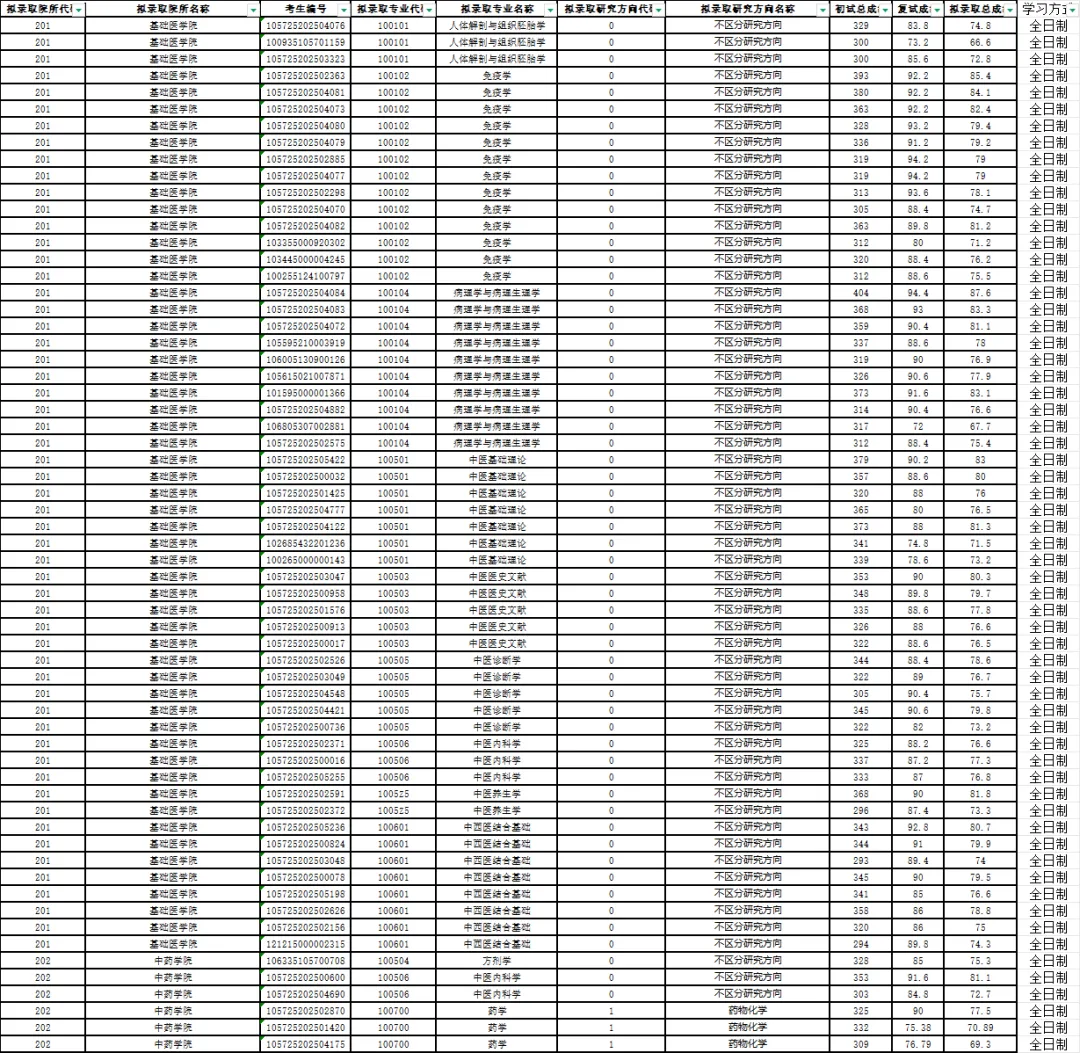 本期给大家分享的是广州中医药大学2025考研一志愿拟录取名单。