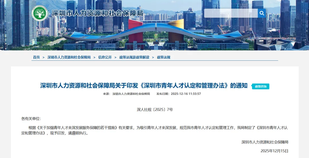 深圳市青年人才认定和管理办法