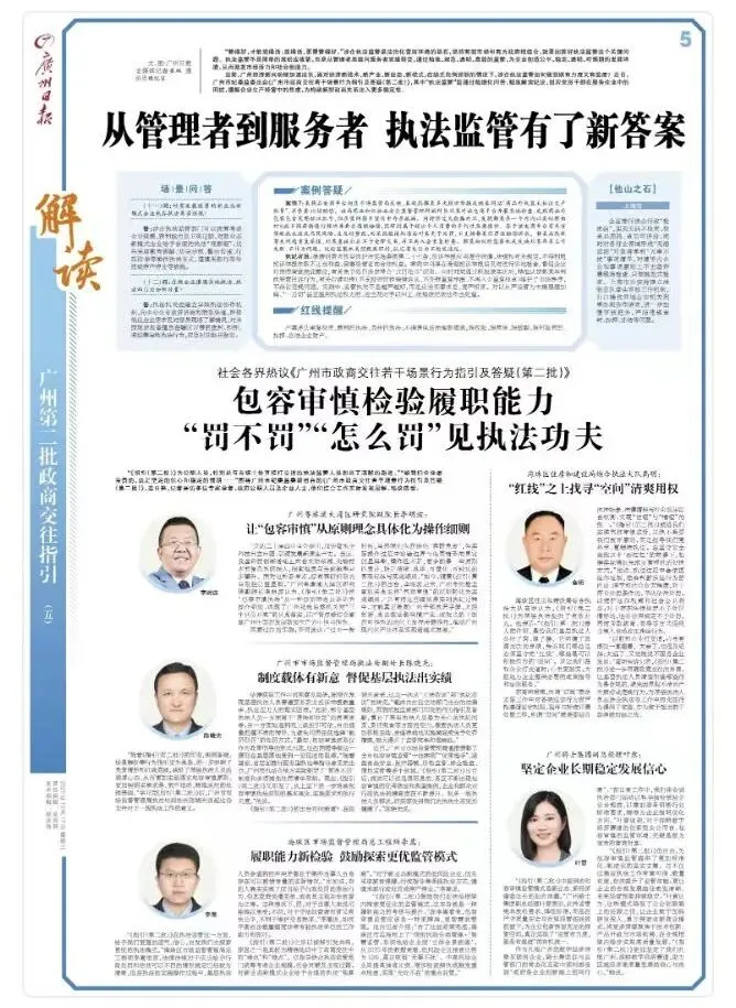 海珠区住房和建设局综合执法大队高明认为,《指引(第二批)》为基层执法提供了有效补充。他表示:“《指引(第二批)》最大的作用,是给我们基层执法人员松了绑、撑了腰。它明确了政商交往的界限,告诉我们哪些是必须坚守的‘红线’,哪些是可以积极作为的‘空间’。这让我们在和企业打交道时,心里更踏实,大胆地为企业提供必要的政策指导和法律服务。”