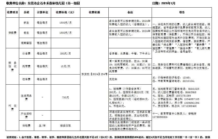 为了让大家更清楚地了解幼儿园收费标准,我园依据东莞市《关于加强学校教育收费公示管理工作的通知》的相关要求,特将收费标准公示如下: