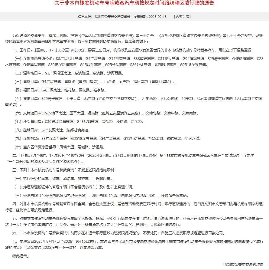 根据深圳市公安局交通管理局发布的