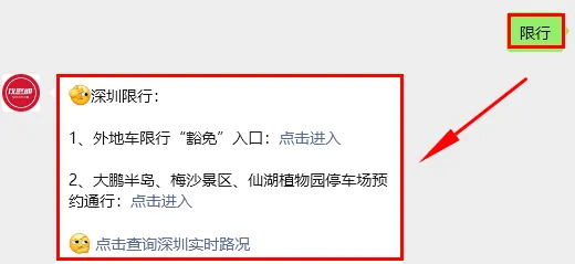 有需要的车主可通过深圳交警微信公众号申请!或点击下方【深圳攻略通】名片,在主页对话框回复【限行】即可进入申请入口。