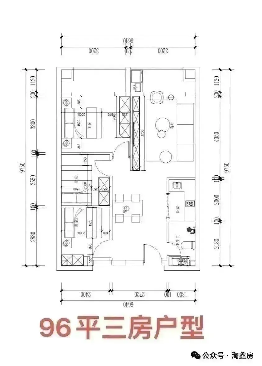 三房两厅96平,总价103.8万
