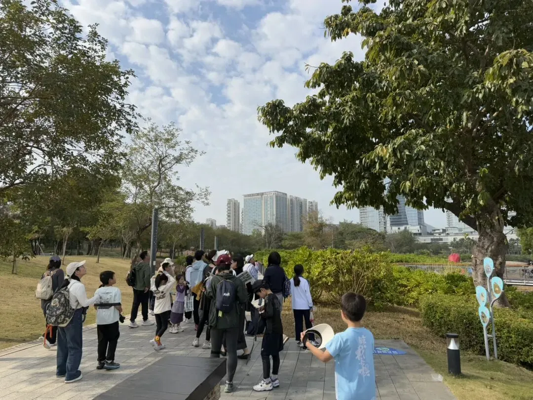 我只认得白鹭和野鸭。正望着,一位老师领着孩子和家长走近,手里拿着望远镜和鸟类图册,静静观察。