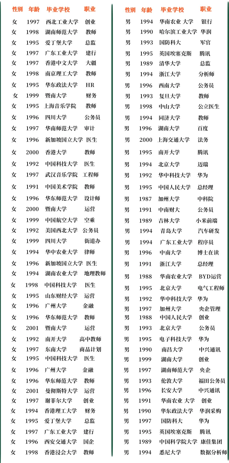 本次活动也将汇聚来自各大名校的单身精英们,与来自各行各业的金融圈、大厂、公教医、深有房、211985名校海归、腾讯华为世界500强名企等高质量青年一起快速破圈!