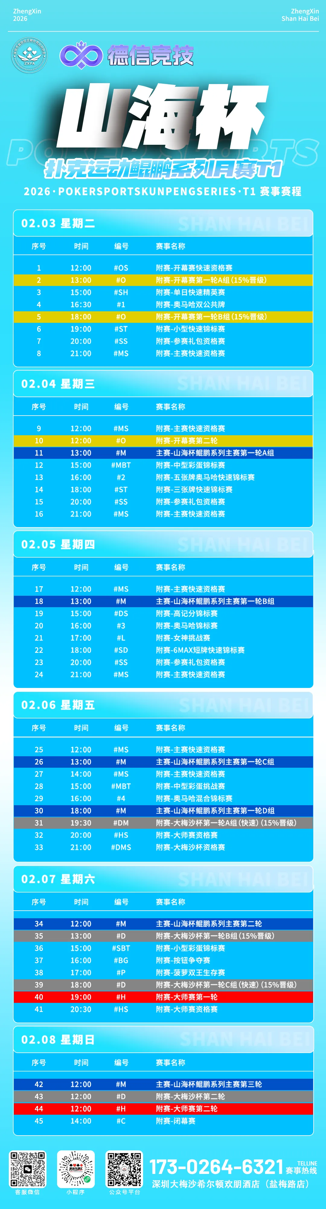 山海杯· 扑克运动鲲鹏系列赛T1将连续举办6天,远道而来的参赛者,不妨在闲暇之余逛逛盐田的美景,尝尝地道的美食,放松身心,调整状态,再回赛场大杀四方。