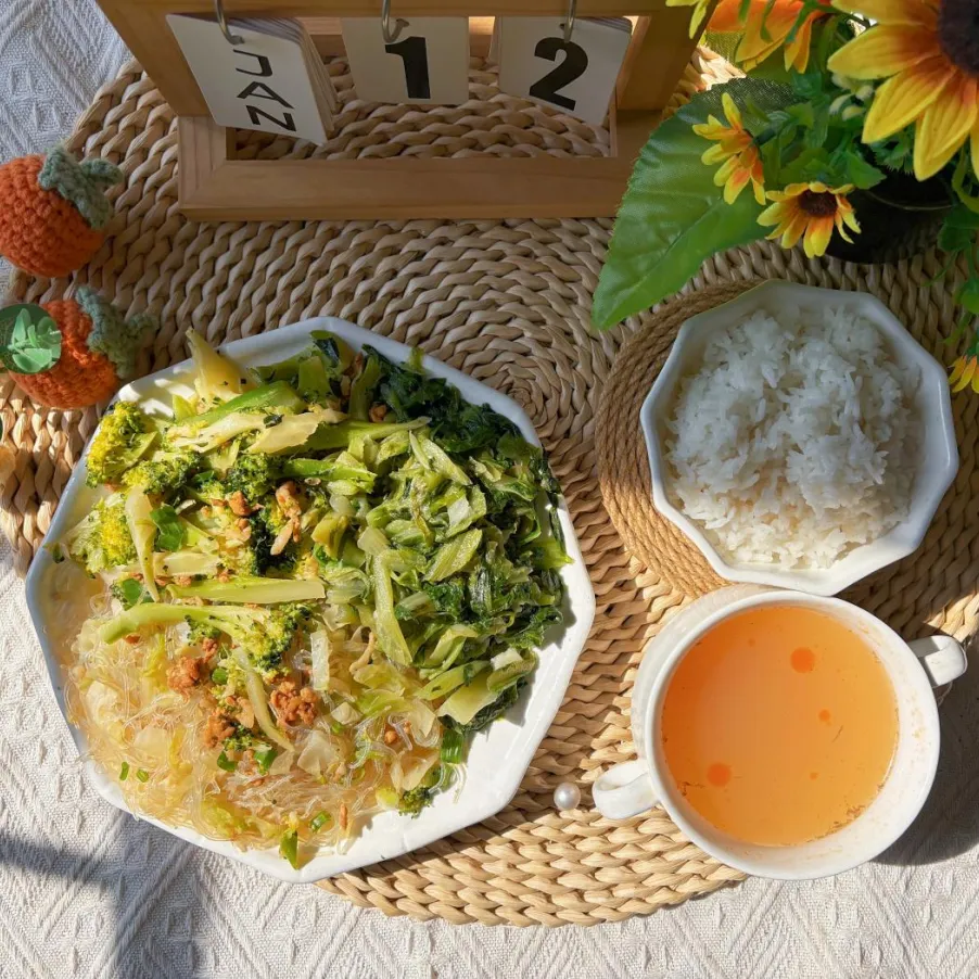 中餐:白米饭、瘦肉包菜粉丝煲