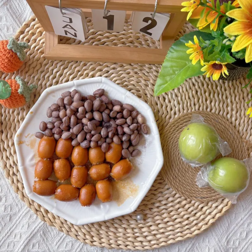 午点:脆皮啵啵肠、盐水花生、青枣