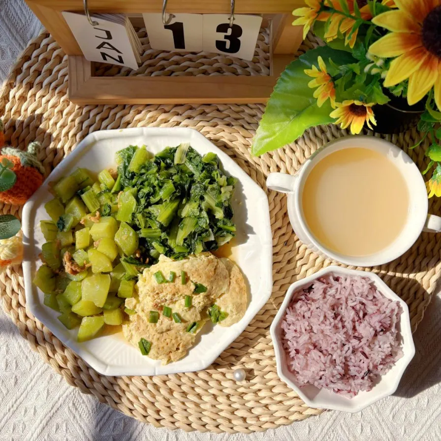 中餐:双色米饭、香葱肉末蒸蛋