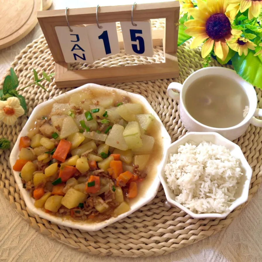 红烧冬瓜、雪梨瘦肉汤
