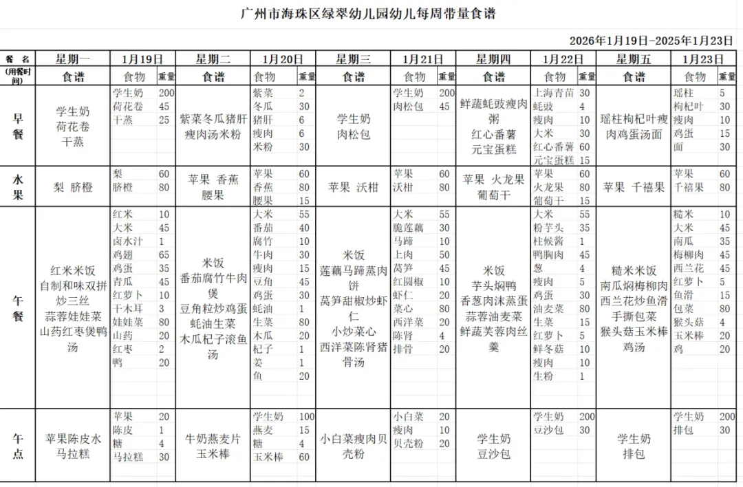 绿翠幼儿园食谱