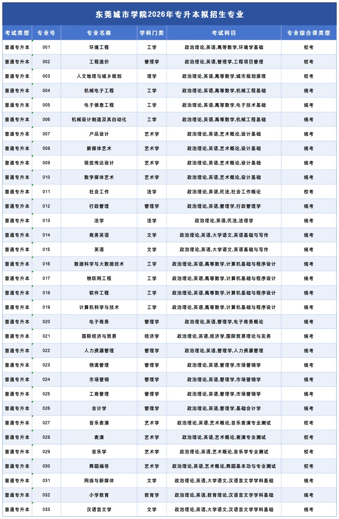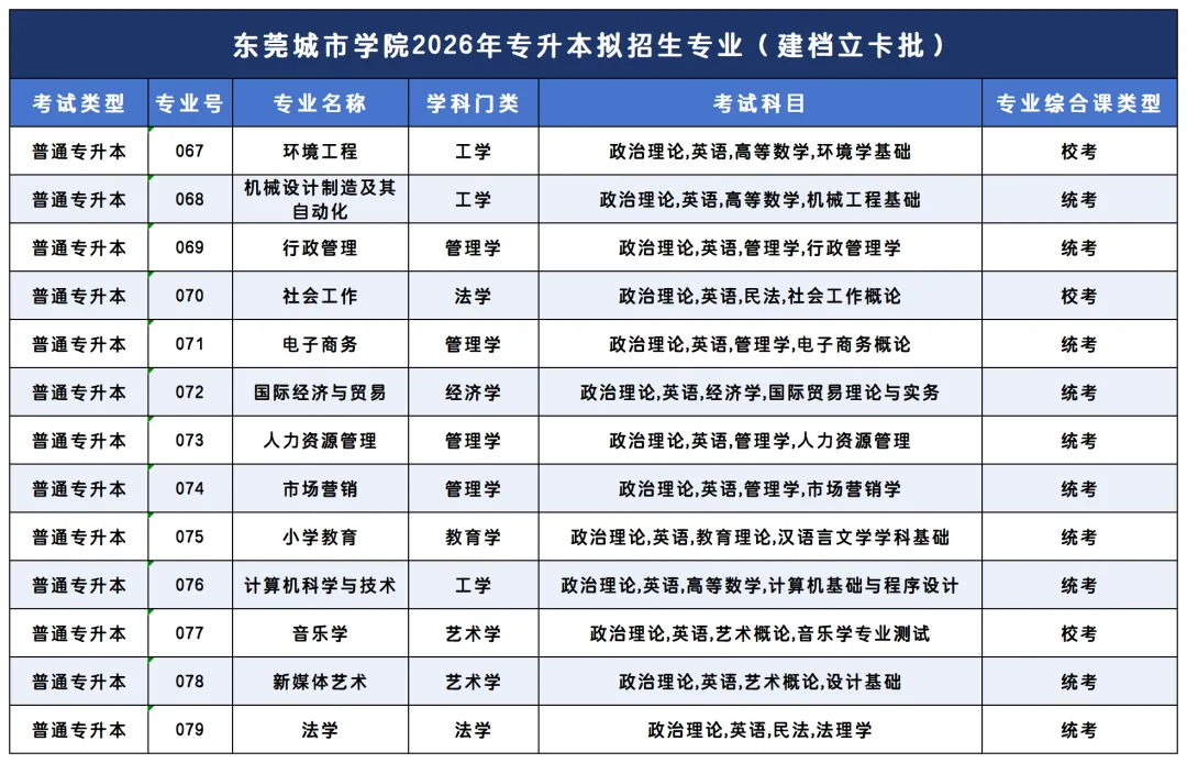 东莞城市学院2026年普通专升本